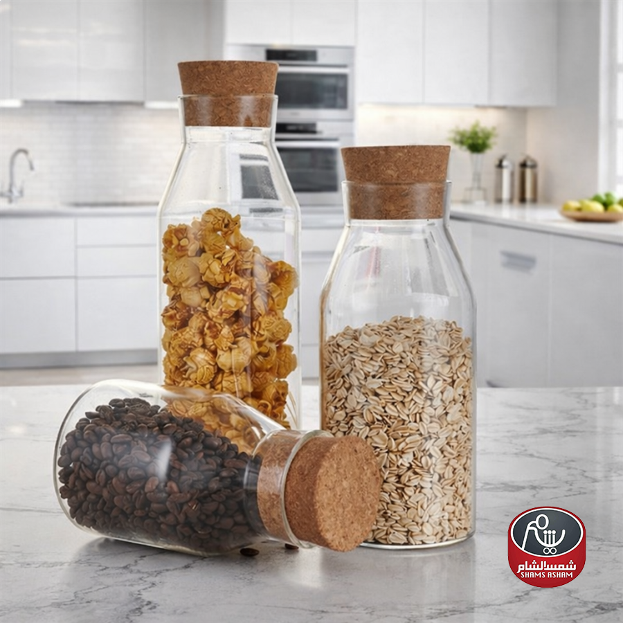 برطمان زجاجي شفاف بتصميم أنيق وعصري، مزوّد بغطاء من الفلين الطبيعي بإغلاق محكم يحافظ على المحتوى طازجًا، مثالي لتخزين القهوة، السكر، البهارات أو المكسرات، ويضيف لمسة جمالية مرتبة للمطبخ أو طاولة التقديم.