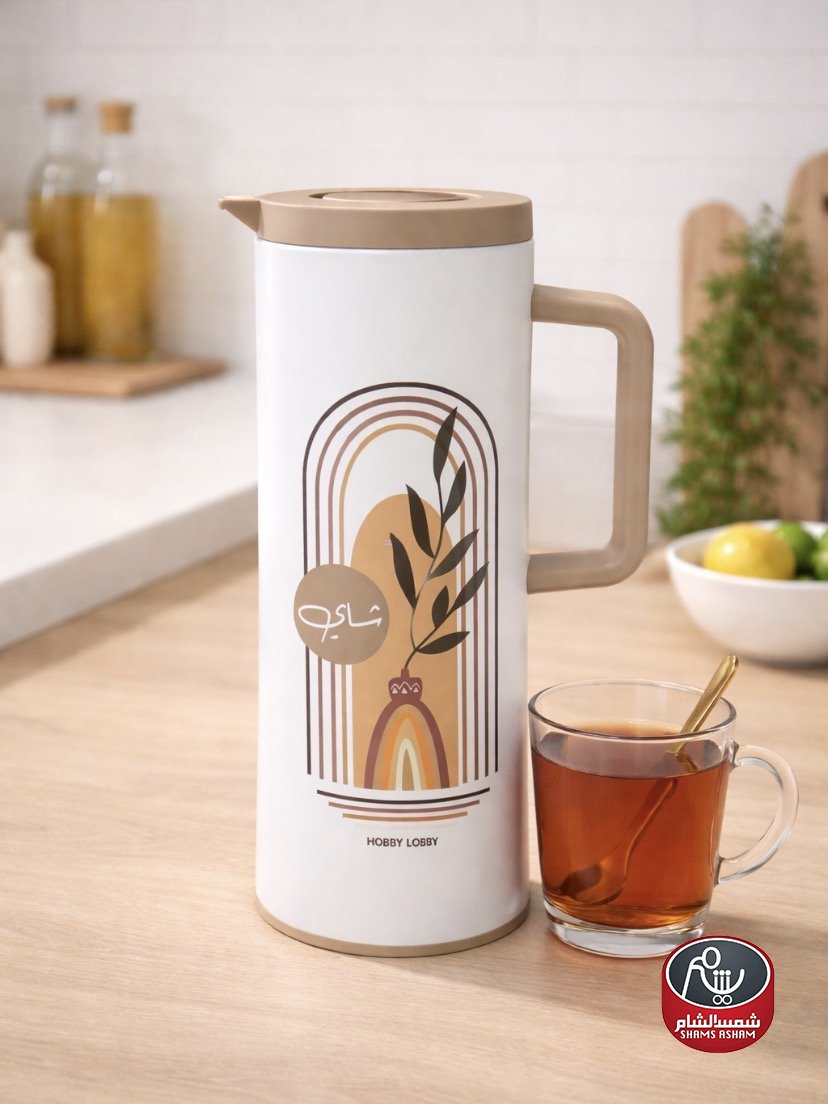 ثيرموس شاي بتصميم عصري أنيق بسعة 1 لتر، مثالي للحفاظ على حرارة المشروبات لفترة طويلة سواء للشاي أو القهوة، مصنوع بجودة عالية مع يد مريحة للاستخدام اليومي، مناسب للبيت والضيافة ويضيف لمسة جمالية راقية على الطاولة