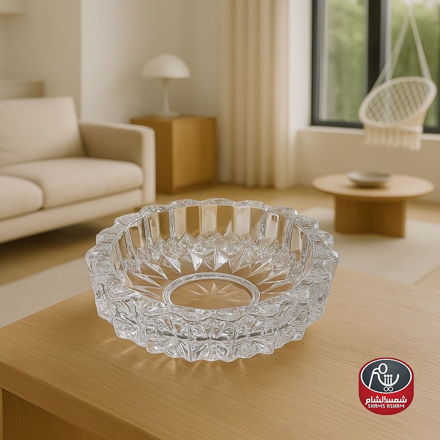 متكة سجائر زجاجية فاخرة مصنوعة من زجاج ثقيل وشفاف بنقوش بارزة تضيف لمسة أنيقة. يبلغ قطرها 19 سم وارتفاعها 6 سم، ما يجعلها واسعة وعملية لاحتواء الرماد والاستخدام المريح. مثالية لطاولات الصالون أو المكتب وتُعد قطعة أنيقة تضيف لمسة راقية لأي مساحة.