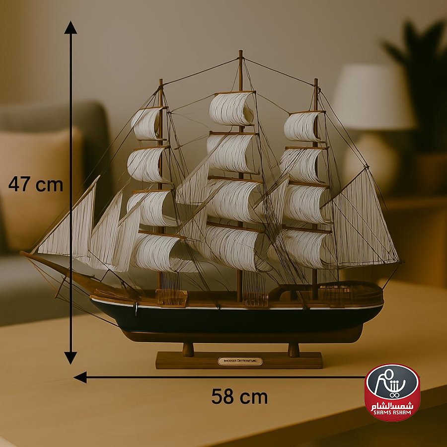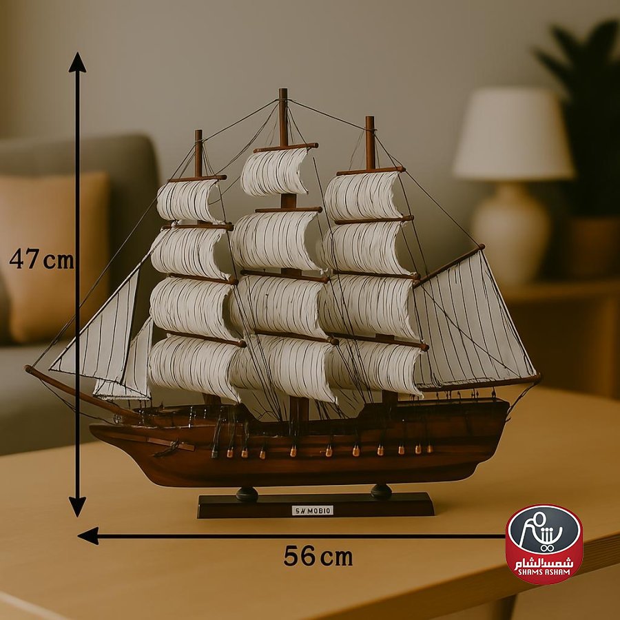 تحفة ديكورية على شكل سفينة شراعية فخمة بتصميم كلاسيكي وتفاصيل متقنة تضيف لمسة بحرية أنيقة لأي ديكور داخلي. حجم كبير يلفت الأنظار بقياسات 47×58 سم، مما يجعلها مثالية للزينة في غرف المعيشة أو المكاتب.