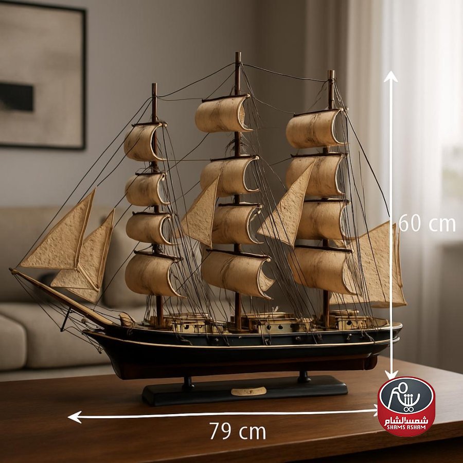 سفينة ديكور فاخرة بحجم كبير وتصميم كلاسيكي مستوحى من السفن الشراعية القديمة، تتميز بتفاصيل دقيقة وأشرعة بلون عتيق يضفي طابعاً تاريخياً أنيقاً. مثالية لتزيين الصالونات أو المكاتب. الأبعاد: 60×79 سم.