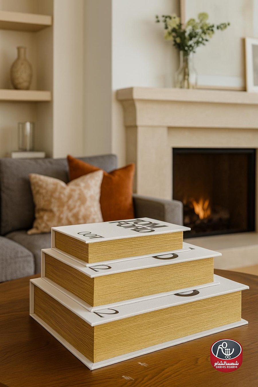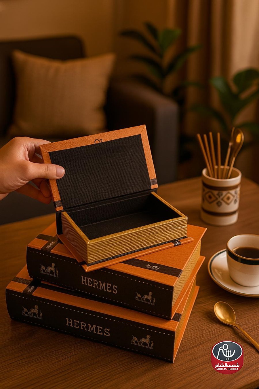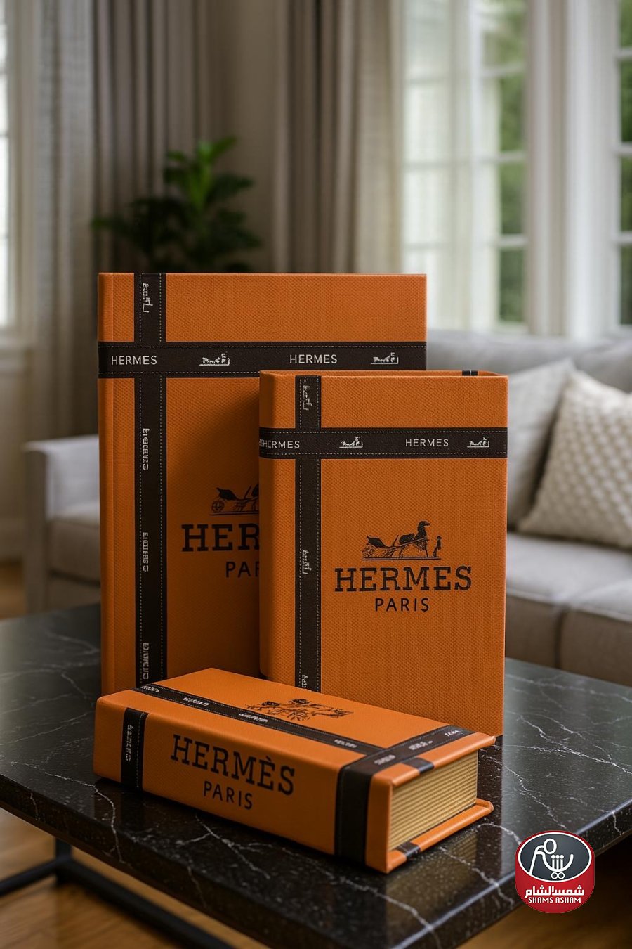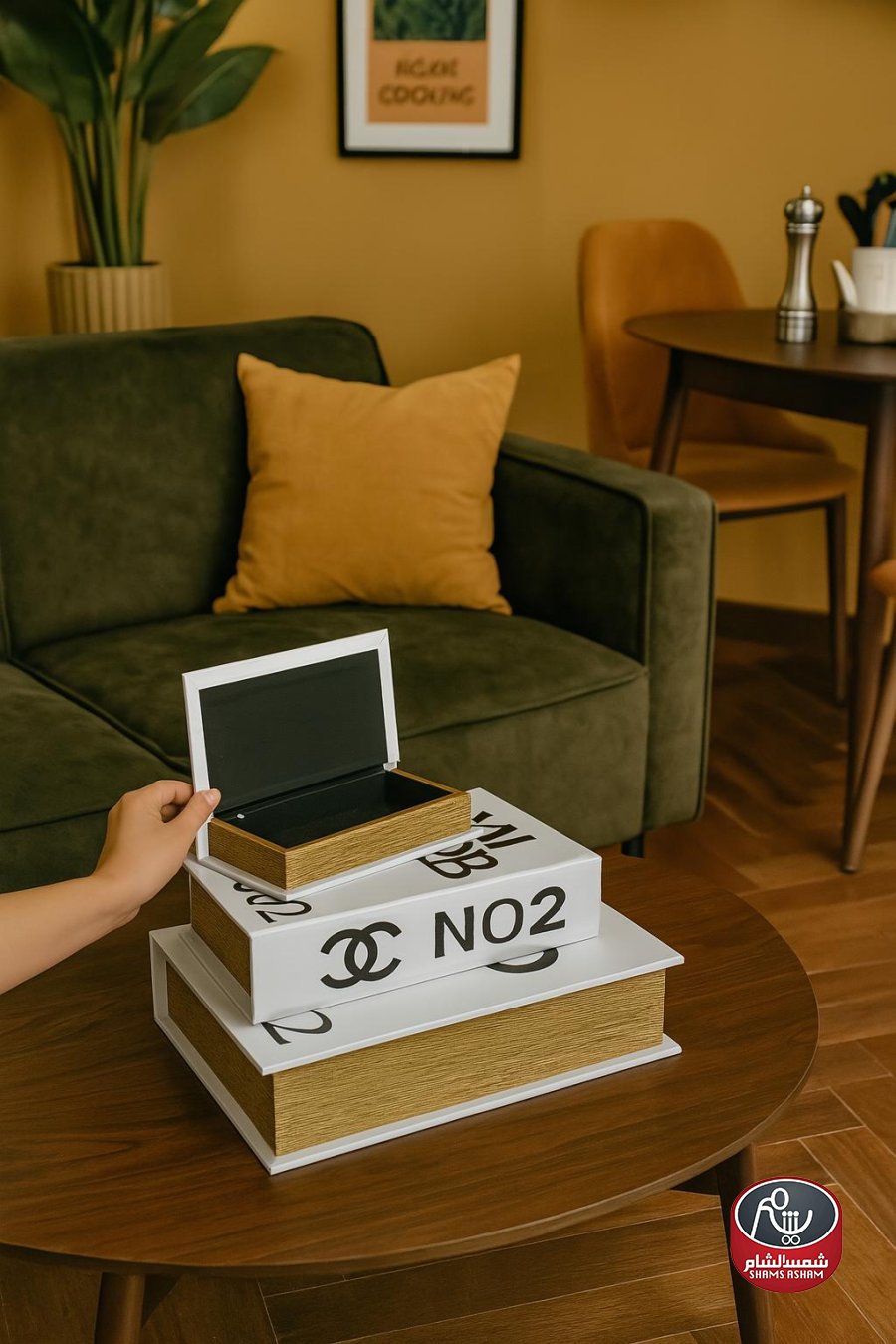طقم كتب ديكور فاخر بشكل صناديق تخزين خشبية بتصميم مستوحى من أشهر الماركات العالمية، مثالي لترتيب الإكسسوارات والأغراض الصغيرة بلمسة أنيقة، يحتوي على ثلاث قطع بمقاسات مختلفة: الصغير 20×12 سم، الوسط 25×15 سم، الكبير 30×21 سم، مناسب لتزيين الطاولات والرفوف بأسلوب عصري وعملي.