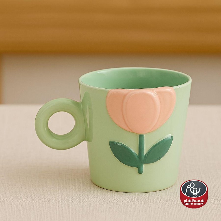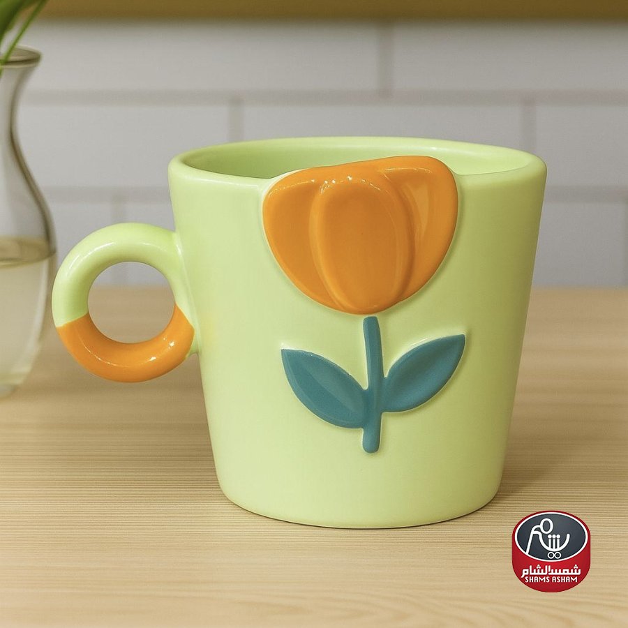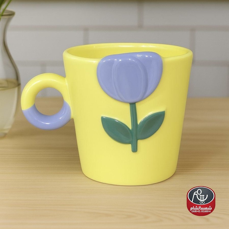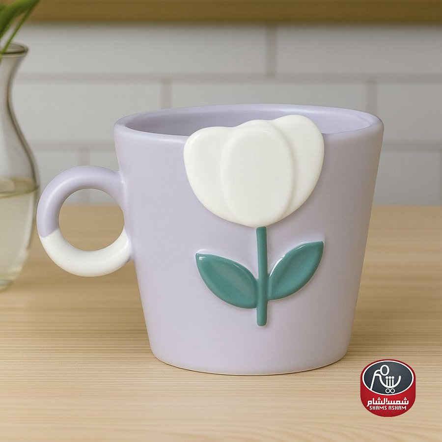 مج قهوة سيراميك بتصميم زهرة بارزة مميز ومقبض دائري أنيق، يضيف لمسة من البهجة لكل كوب. متوفر بعدة ألوان جذابة