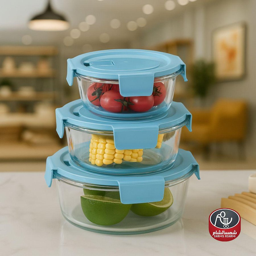 طقم تبروير بايركس دائري بغطاء بلاستيك محكم الإغلاق. مناسب لحفظ الطعام الطازج وتخزينه في الثلاجة أو تسخينه بالميكرويف. مصنوع من زجاج حراري مقاوم، آمن وصحي، وسهل التنظيف. مثالي للاستعمال اليومي في المطبخ أو أثناء التنقل.