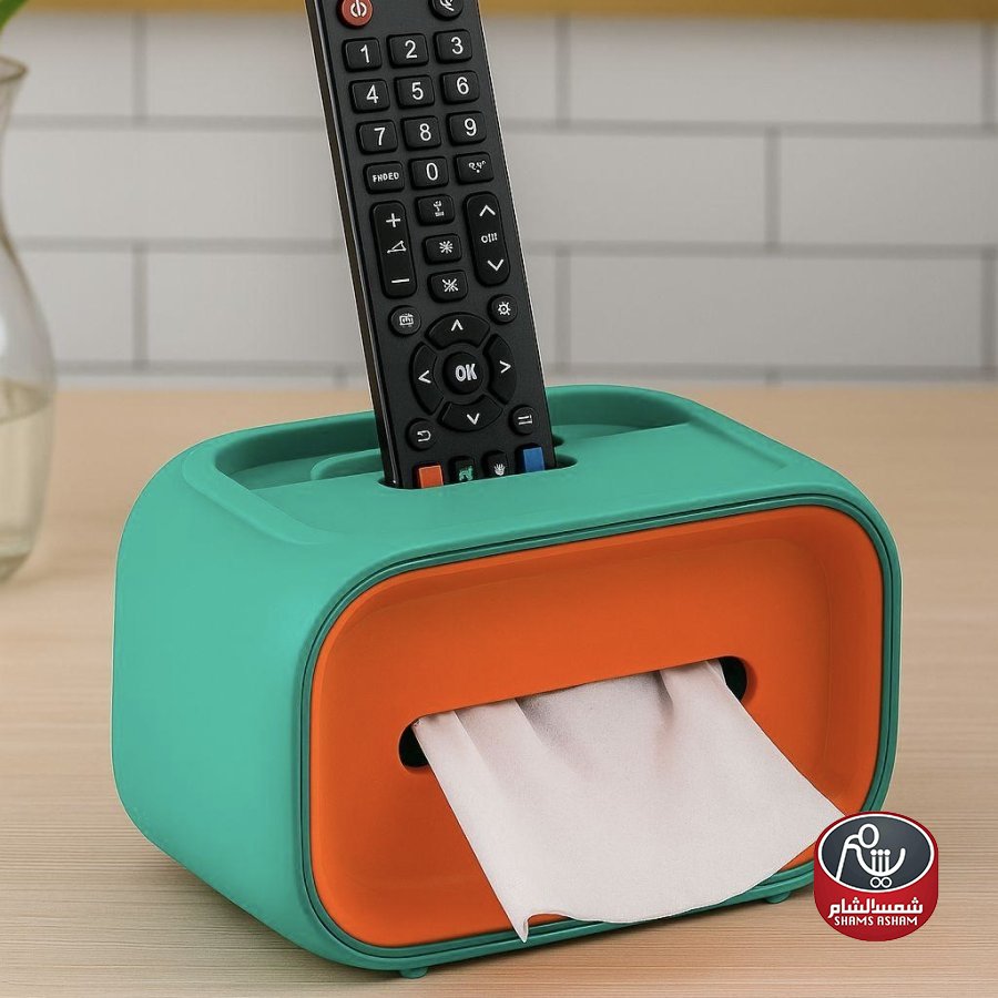 علبة مناديل بتصميم عصري عملي، مزوّدة بفتحة لحفظ جهاز تحكم أو أغراض صغيرة في الأعلى. مثالية لغرف المعيشة وتجمع بين الوظيفة والتنظيم