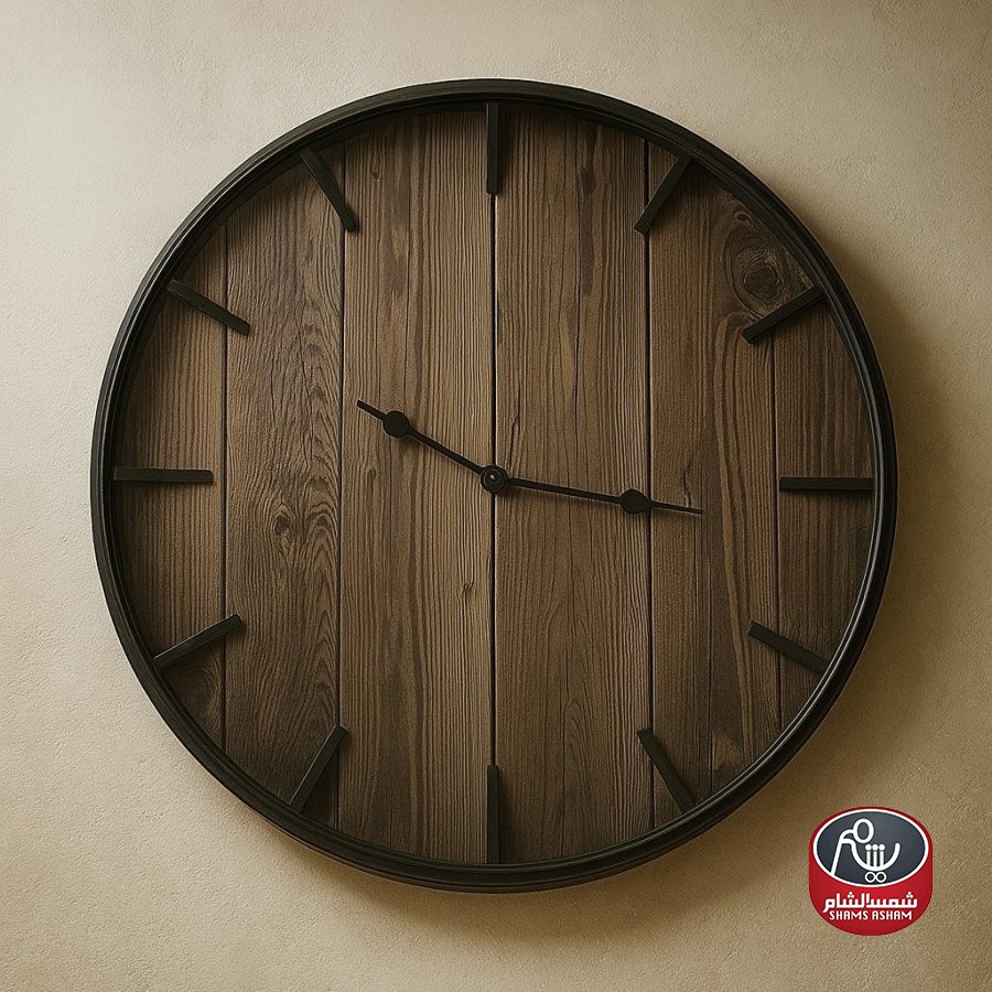 ساعة حائط بتصميم خشبي أنيق وبسيط، تأتي بقطر 75 سم، مع وجه مكوّن من ألواح خشبية طبيعية ولمؤشرات بارزة بلون داكن دون أرقام. تتميز بطابع ريفي عصري يناسب ديكورات المعيشة والمداخل والمكاتب. تجمع بين الطابع الدافئ والهدوء البصري لتكون قطعة ديكور عملية وجذابة في آن واحد.