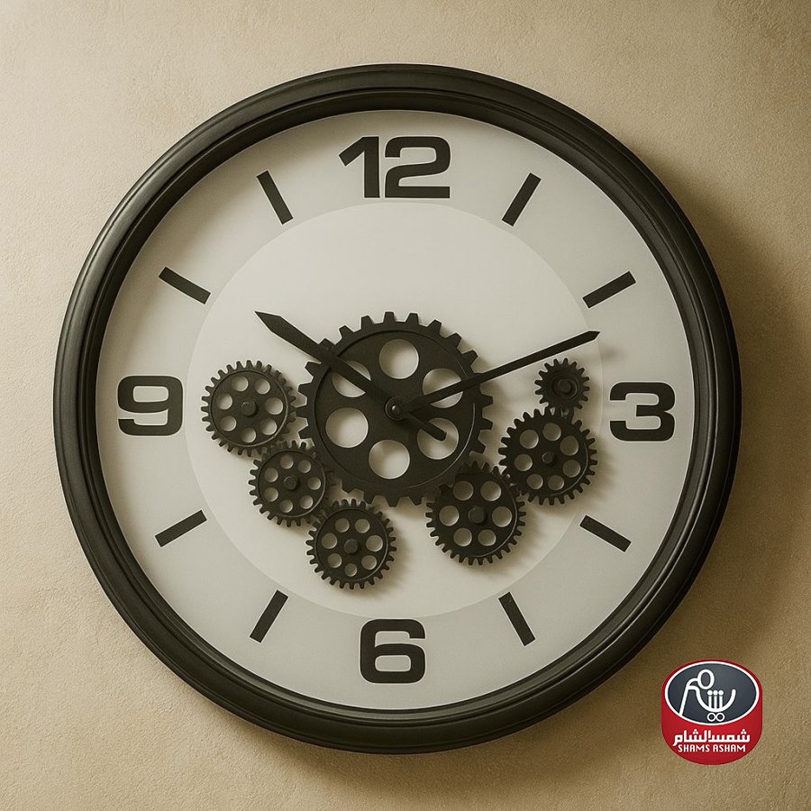 ساعة حائط بقطر 32 سم بتصميم صناعي عصري، تتميز بواجهة واضحة مع أرقام كبيرة ومؤشرات بارزة، إضافة إلى مجموعة تروس داخلية متحركة تعمل ببطارية منفصلة، مما يضفي حركة ديناميكية ولمسة ميكانيكية فريدة على الديكور. تجمع بين العملية والتصميم الجذاب، ومثالية للمكاتب، غرف الشباب أو زوايا الديكور الحديثة.