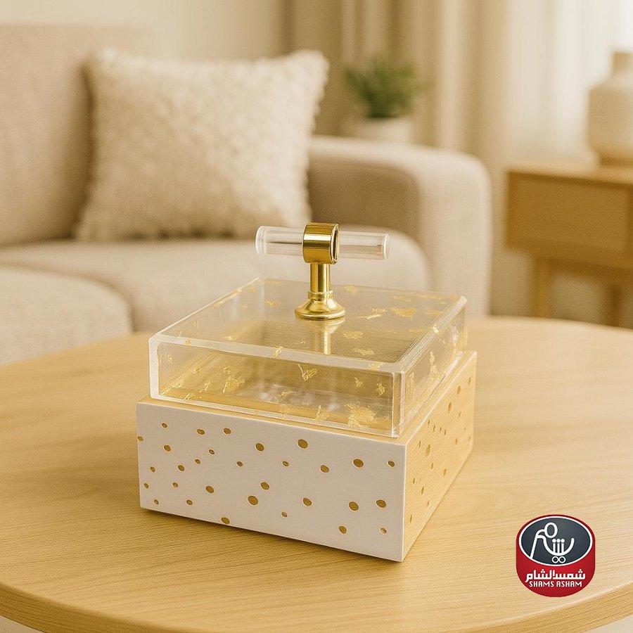 علبة تقديم أنيقة بتصميم عصري، تأتي بحجم 12×12 سم، مناسبة لتقديم الشوكولاتة، التمر أو المكسرات. تتميز بغطاء شفاف بيد مميزة تضيف لمسة فاخرة، وقاعدة مزخرفة بشكل جذاب تناسب ديكور الضيافة والمجالس. مثالية للاستخدام اليومي أو للمناسبات الخاصة