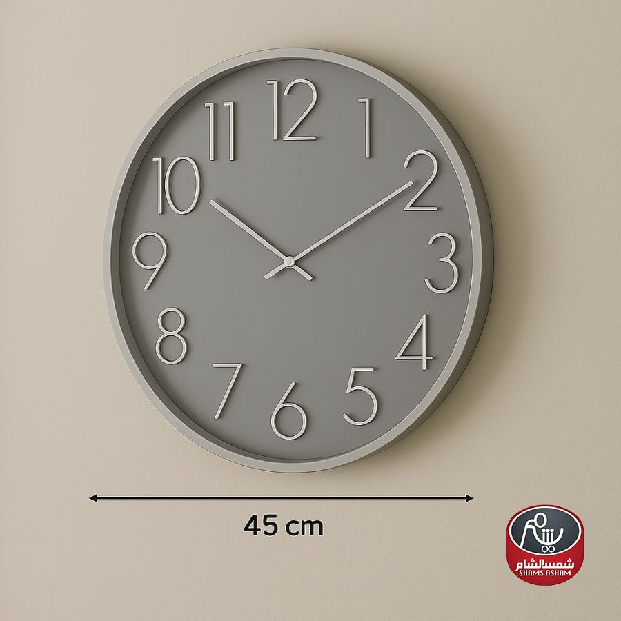 ساعة حائط دائرية بقطر 45 سم، بتصميم عصري أنيق يجمع بين البساطة والوضوح. تتميز بواجهة بلون موحّد ناعم وأرقام بارزة تمنحها طابعاً راقياً وسهل القراءة. إطار الساعة الرفيع يعزز من مظهرها العصري، ما يجعلها مثالية لغرف المعيشة أو المكاتب ذات الطابع المينيمالي.