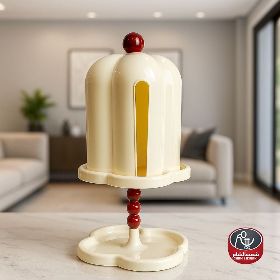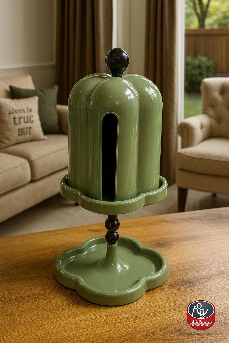 حافظة مناديل بتصميم عصري ومميز على شكل قبة مزخرفة، تأتي بقاعدة ثابتة مزينة بكريات لامعة تضيف لمسة أنيقة للمكان. مصنوعة من بلاستيك عالي الجودة، وتناسب الطاولات أو المكاتب أو طاولات الضيافة، حيث تفتح المناديل من الجوانب بطريقة عملية وسهلة الاستخدام.