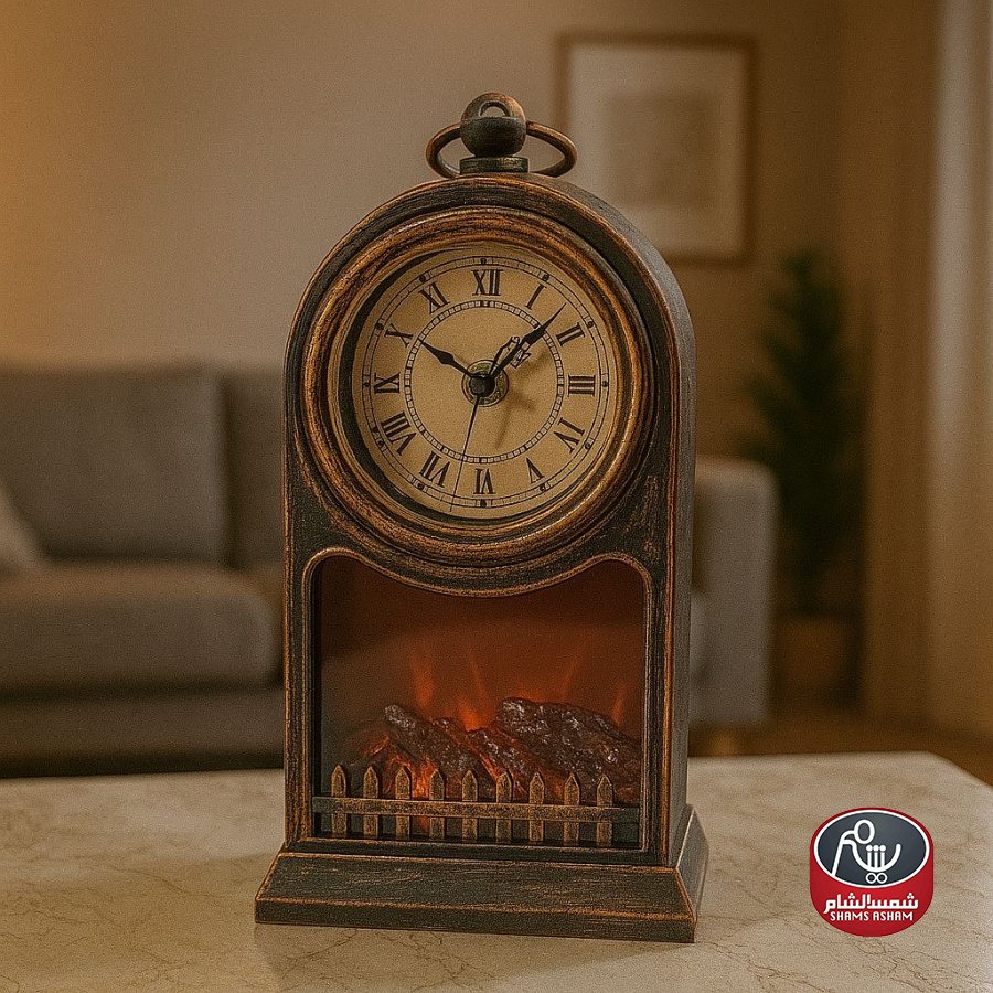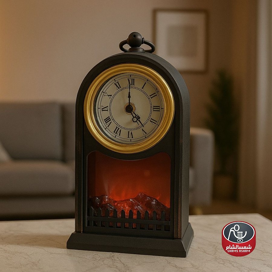ساعة ديكور كلاسيكية بتصميم فريد يجمع بين شكل الساعة التقليدية ومدفأة ديكور صغيرة، تعمل على الكهرباء. تأتي بأبعاد: ارتفاع 25 سم، عرض 13 سم، وعمق 10 سم. تتميز بإطار معدني بلمسة نحاسية معتّقة وأرقام رومانية أنيقة، وأسفلها تأثير لهب مضيء يحاكي النيران الحقيقية. قطعة ديكور مميزة تضيف دفء وأناقة للمكان، مثالية للطاولات الجانبية أو رفوف الزينة.