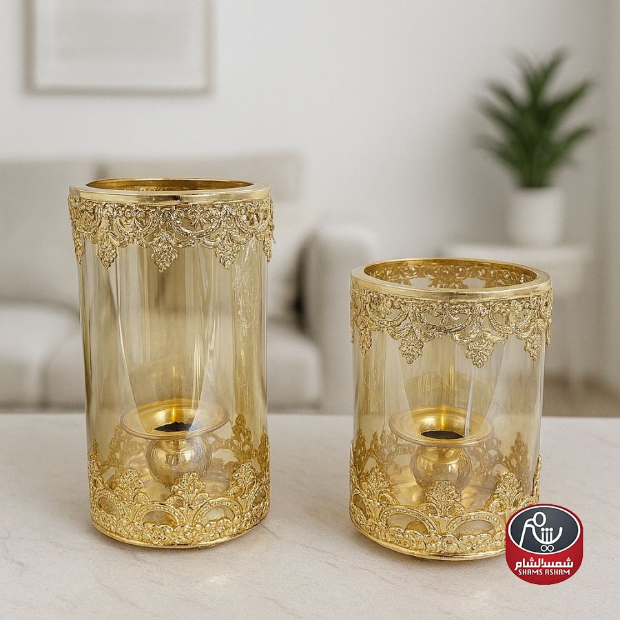 شمعدان أو فازة زجاجية بتصميم فاخر مزخرف بنقوش ذهبية فخمة من الأعلى والأسفل، تعكس طابعاً شرقياً أنيقاً يناسب تزيين الطاولات والمجالس. تتوفر بقياسين: ارتفاع 16 سم وارتفاع 22 سم، وتُباع كل قطعة على حدة، ما يمنحك حرية التنسيق حسب ذوقك.