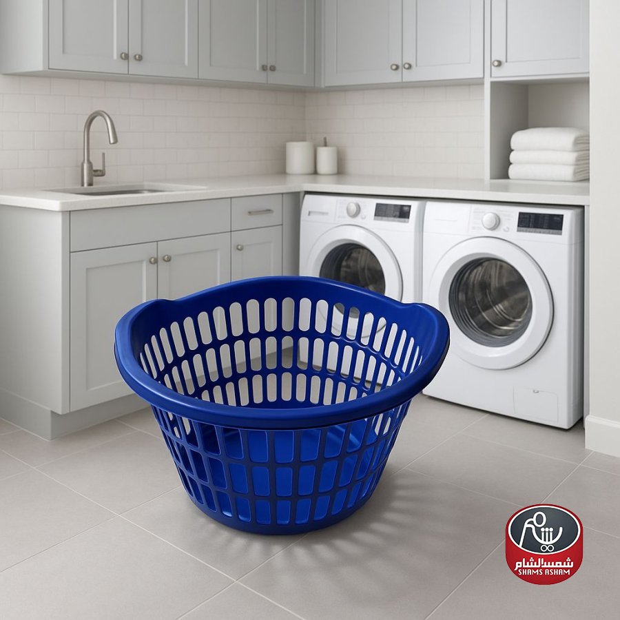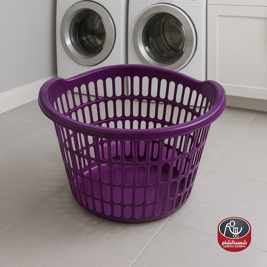 سلة غسيل بلاستيكية مستديرة بفتحات تهوية، بارتفاع 30 سم وقطر 47 سم. تصميم عملي وخفيف الوزن، مثالية لجمع الغسيل أو تخزين الملابس المؤقت قبل التنظيف. مزودة بحواف عريضة لسهولة الحمل والنقل.
