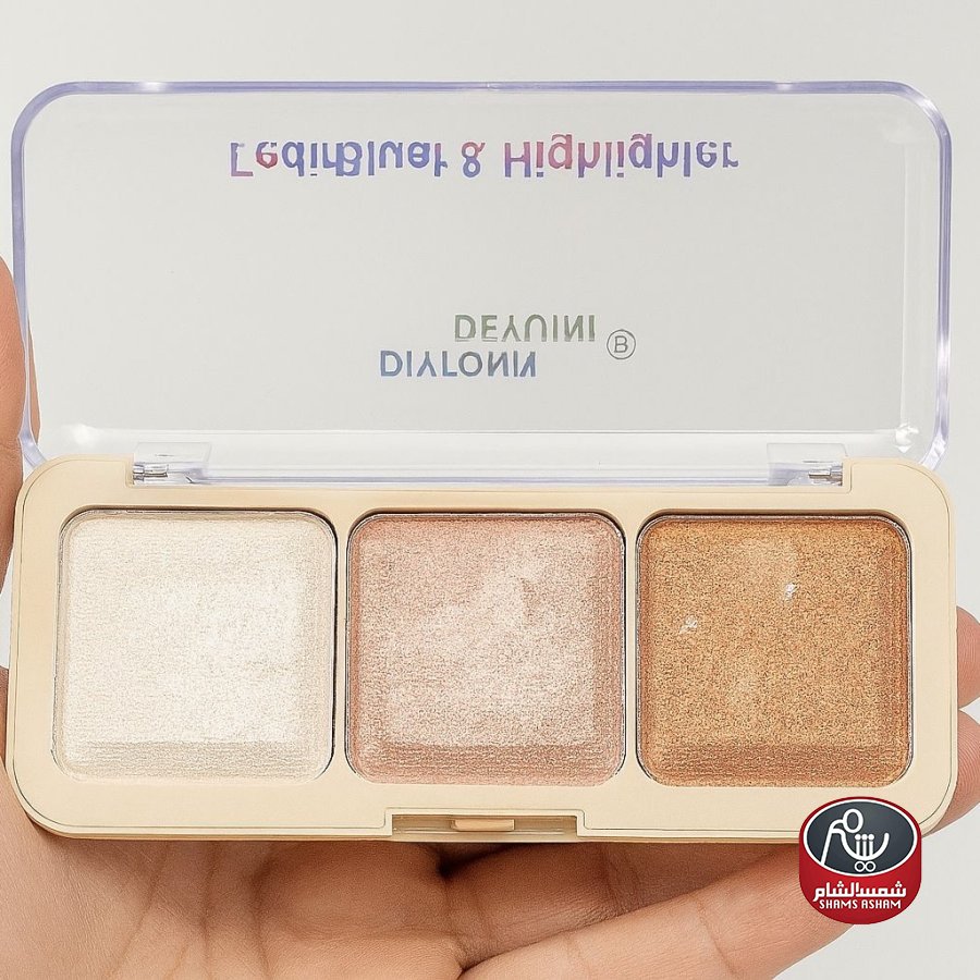 باليت هايلايتر من Dialonia بثلاث درجات لامعة تمنحك إشراقة طبيعية ولمسة مضيئة مثالية على الوجه والخدود. تركيبة كريمية سهلة الدمج وثبات يدوم لساعات.
