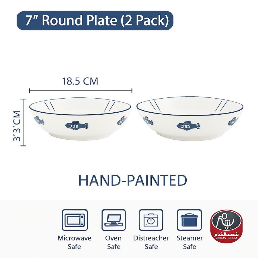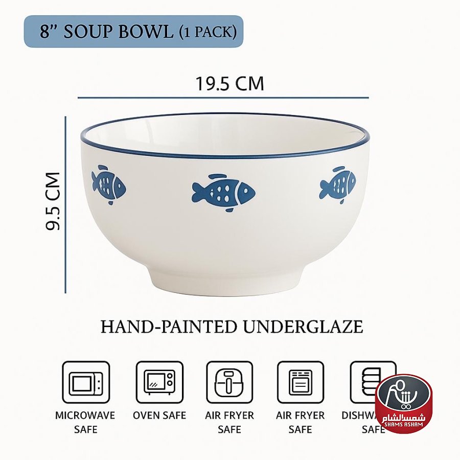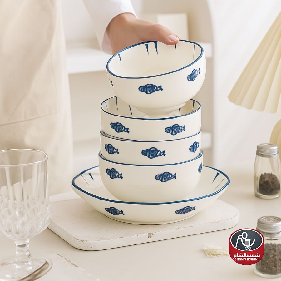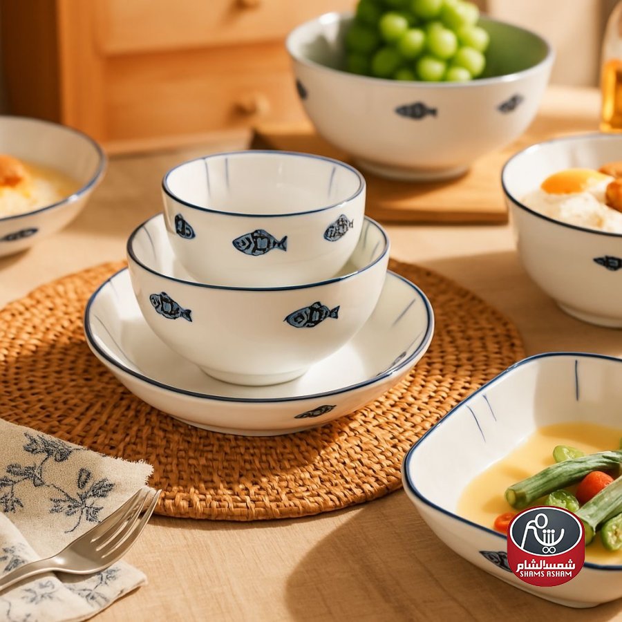 مجموعة صحون بورسلان ثقيل مرسومة يدويًا بتصاميم مستوحاة من البحر، تتوفر بعدة أشكال وأحجام لتناسب مختلف الاستخدامات اليومية. يمكن شراء كل قطعة بشكل منفصل حسب رغبة الزبون دون الالتزام بطقم كامل، مما يمنح حرية في اختيار الحجم أو الشكل المناسب