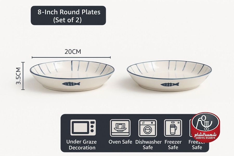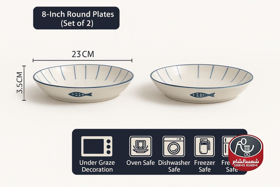 جميع القطع آمنة للاستخدام في الميكروويف، الفرن، غسالة الصحون، الفريزر، وقلايات الهواء، وتتميز بلمسات فنية تحت التزجيج تضمن ثبات الألوان ومتانة طويلة الأمد.
