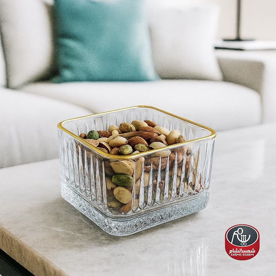 صحن زجاجي مربع بتصميم أنيق ونقشة موحدة يضفي لمسة فاخرة على التقديم، يتميز بحجم عملي 9*9 سم مناسب لتقديم المكسرات أو الحلويات أو المقبلات، ويأتي الطقم كاملاً مكوّن من 6 قطع متطابقة، مما يجعله خيارًا مثاليًا للضيافة اليومية أو للمناسبات.