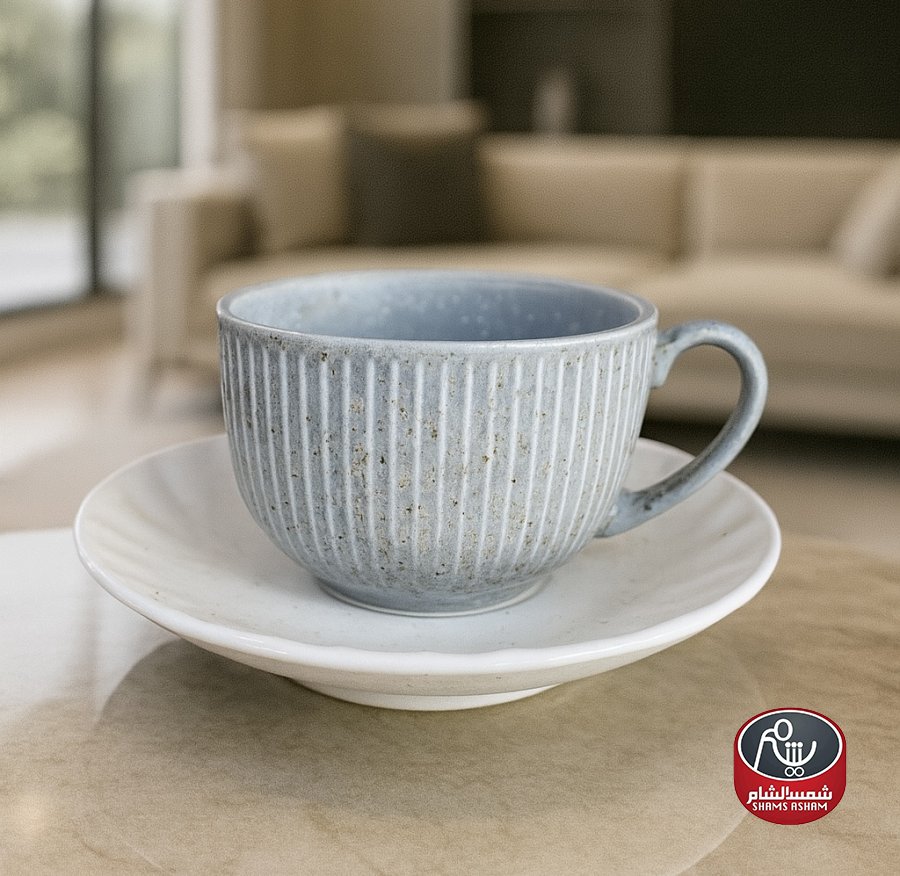 طقم مميز من 6 كاسات مع 6 صحون بتصميم ريفي منقط، مناسب لتقديم الشاي أو النيسكافيه. خامة عالية الجودة ولمسة فنية تضيف دفء وأناقة لجلساتك اليومية