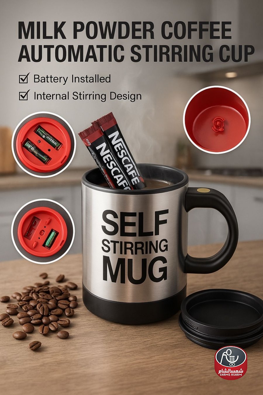 كوب خفق أوتوماتيكي بغطاء محكم وتصميم داخلي يعمل بالبطارية لخفق القهوة أو الحليب البودرة تلقائيًا بضغطة زر، مصنوع من الستانلس ستيل المقاوم للحرارة مع مقبض مريح، مثالي للاستخدام اليومي في المكتب أو المنزل، ويأتي مع البطاريات جاهزة للاستخدام.
